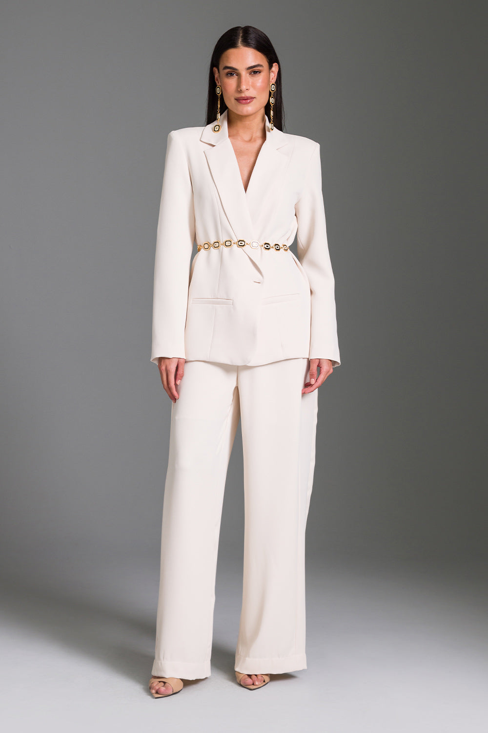 Blazer reto liso com recortes: gola e frente duplos com acabamento em dobra que garante estrutura e elegância. a frente conta com recortes estratégicos, bolsos falsos aplicados e abertura em transpasse, finalizada com caseado e botão. as costas apresentam recortes verticais que definem a silhueta com sofisticação. internamente, a peça é toda forrada com tecido de toque agradável, com acabamentos das mangas e da barra embutidos ao forro, reforçando a construção refinada e o caimento impecável.